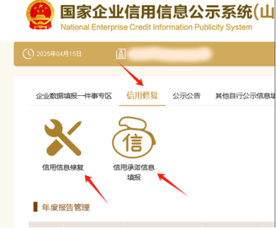 登录“国家企业信用信息公示系统(山东)”本单位页面中